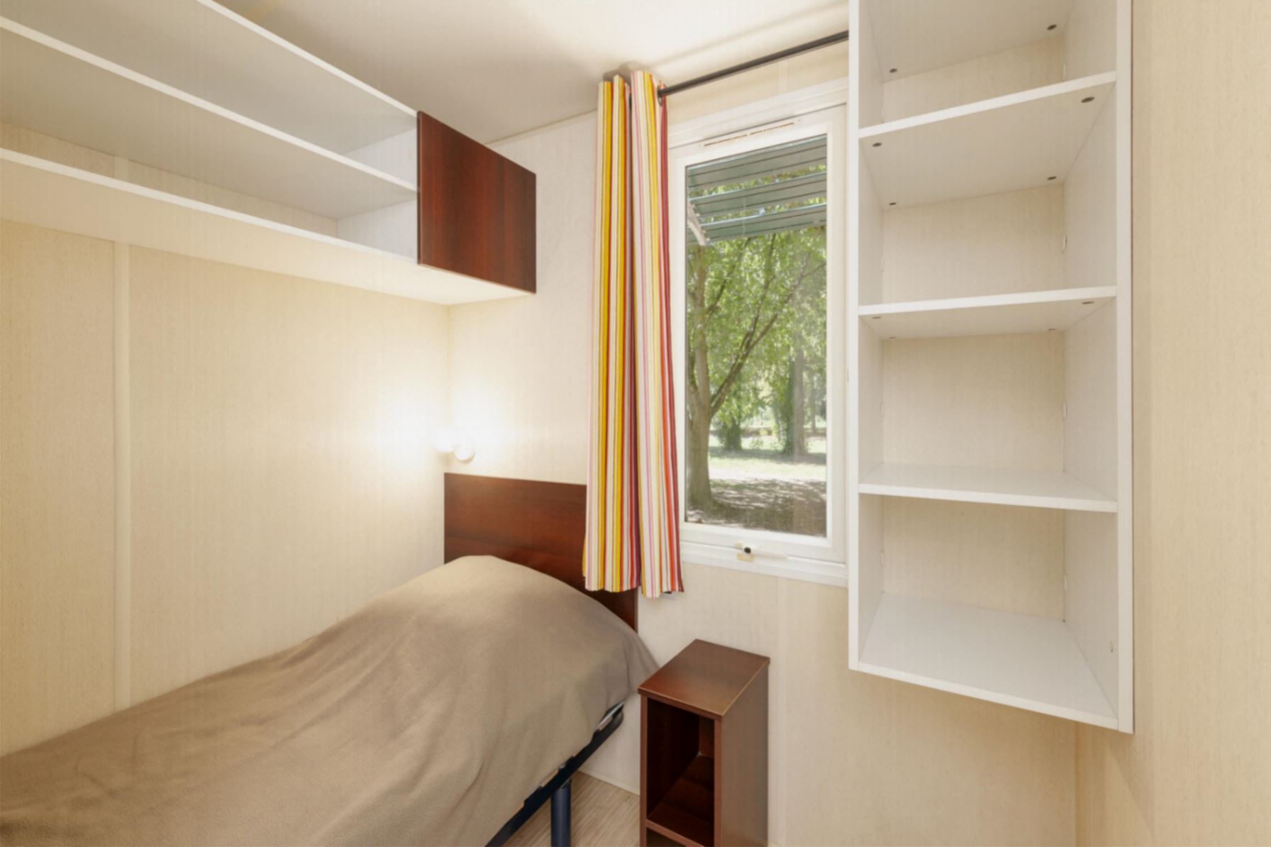Coin nuit : une chambre avec 1 lit double, une chambre avec 1 lit simple, oreillers et couvertures fournis.