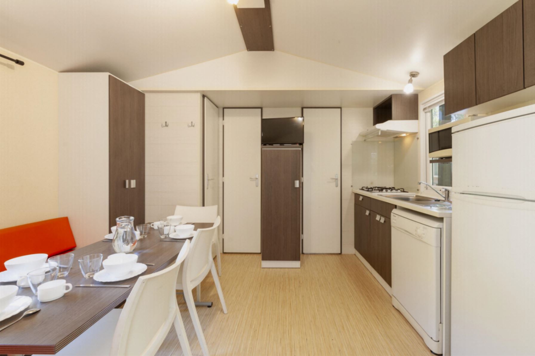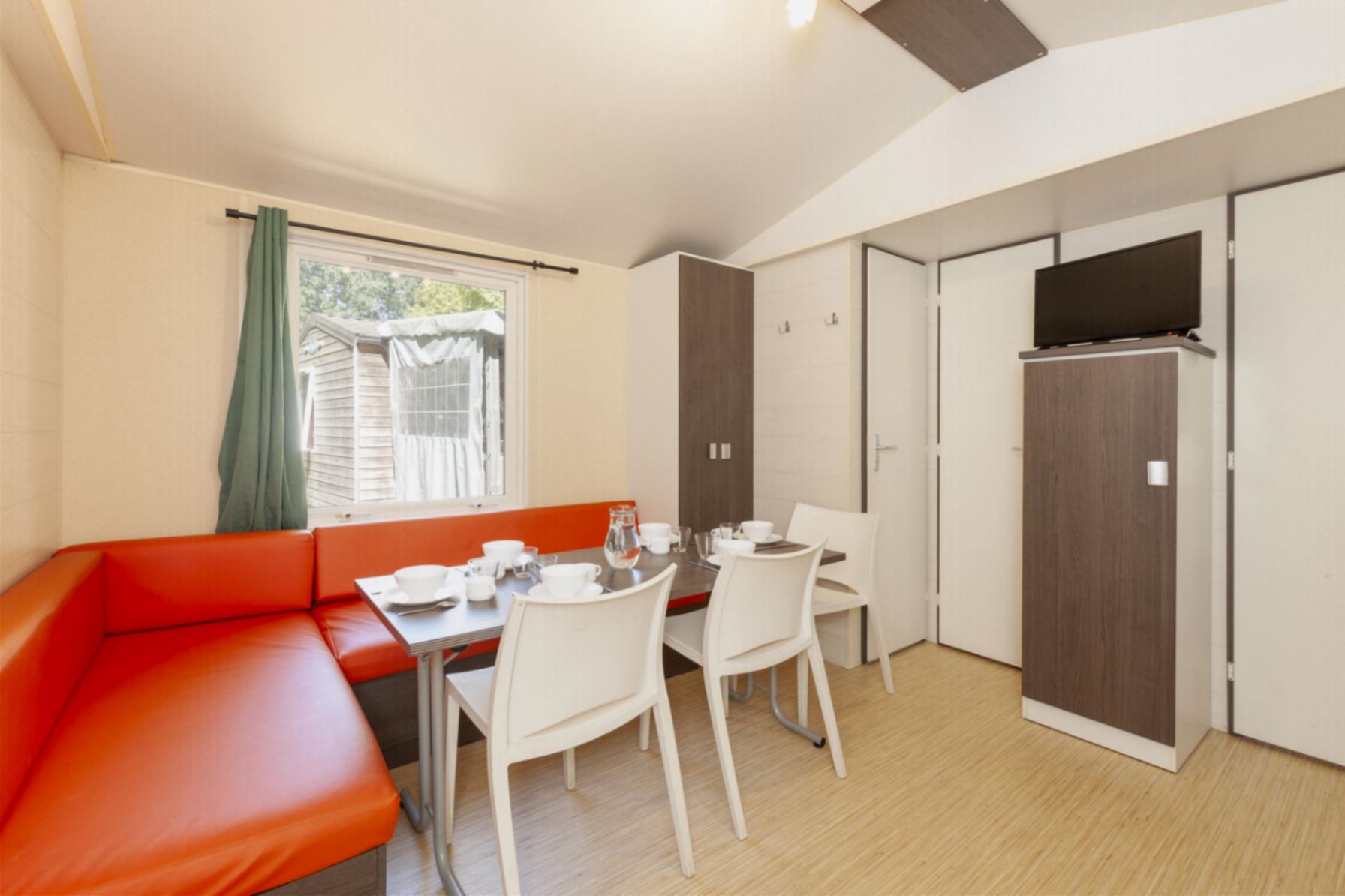 Lounge/living area: equipped kitchen (sink, gas burner, fridge-freezer, microwave, coffee maker, crockery, dishwasher), heating, television.