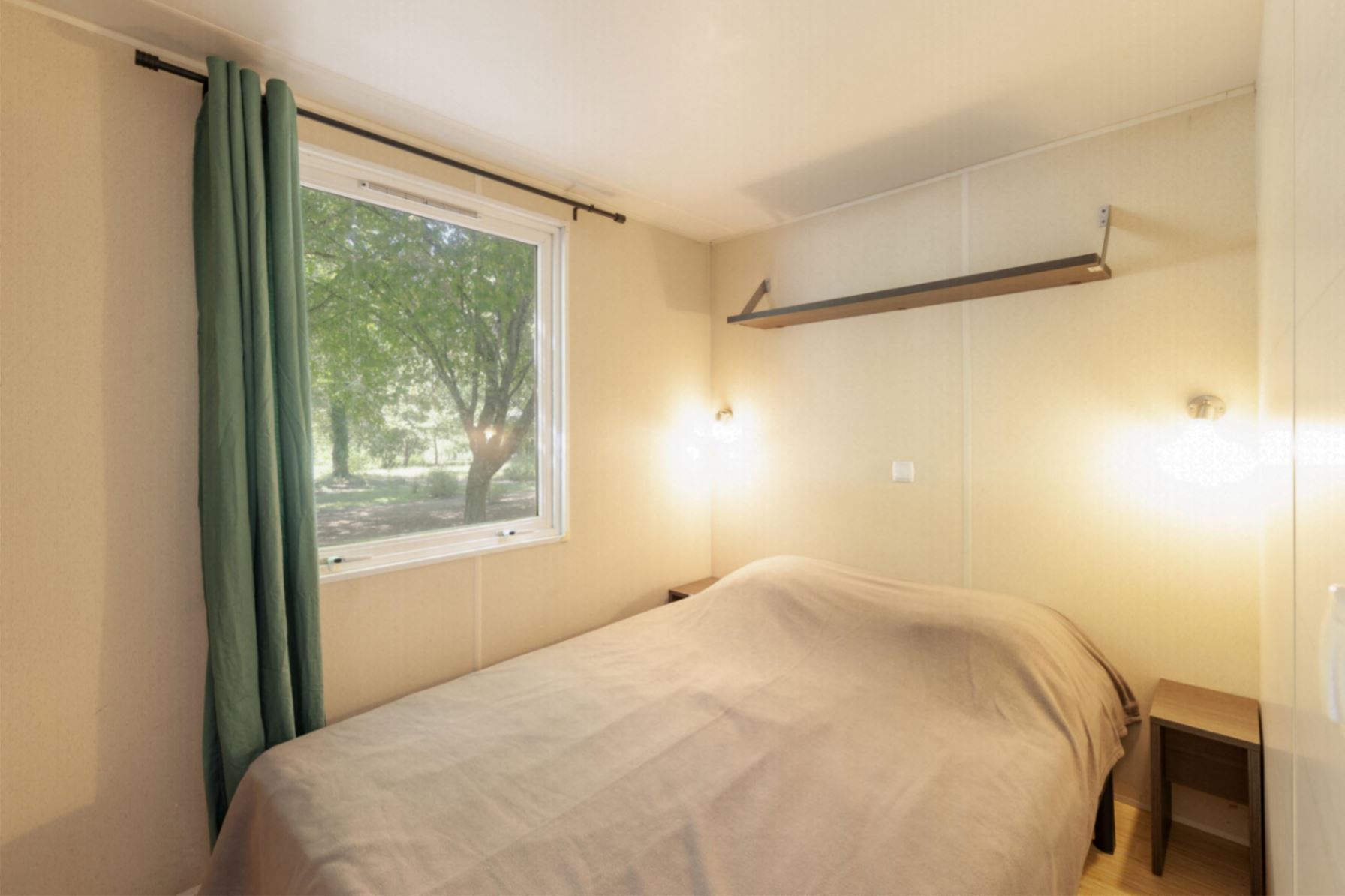 Sleeping area: one bedroom with 1 double bed, two bedrooms with 2 single beds side by side, pillows and blankets provided.