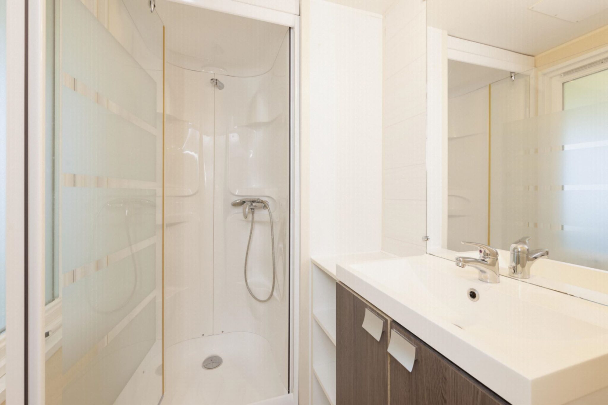 Sanitary: bathroom with shower and sink. Separate WC.