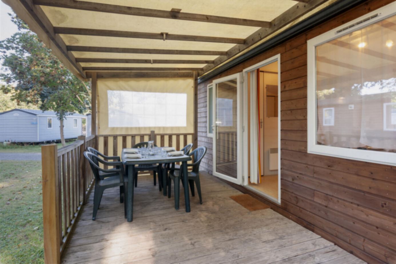 Outside: semi-covered terrace with garden furniture.